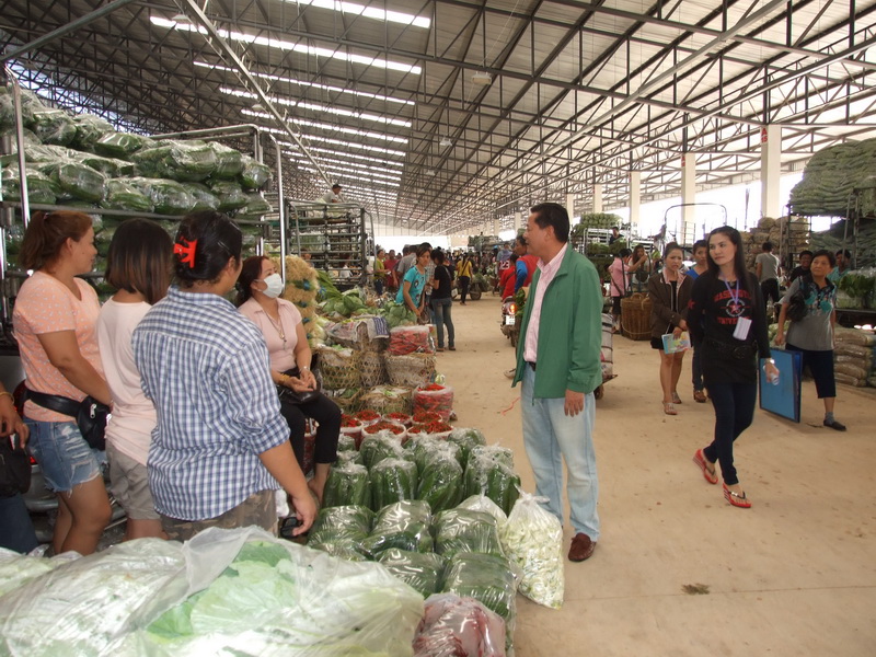 สส.นภินทร ศรีสรรพางค์ ประธานกรรมการผู้จัดการบริษัทแอ็กโกรคอมเมอร์ส กรุ๊ป จำกัด ให้สัมภาษณ์คณะสื่อมวลชน กรณีตลาดศรีเมืองคึกคักเนื่องจากพ่อค้า แม่ค้า และเกษตรกรจากตลาดไท ตลาดสี่มุมเมือง และตลาดปากคลองเข้าค้าขายที่ตลาดศรีเมือง เมื่อวันที่ 28 ตุลาคม 2554