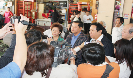 นายสมชาติ สร้อยทอง อธิบดีกรมการค้าภายใน พร้อมคณะผู้บริหารฯ เดินทางมาตรวจติดตามสถานการณ์ราคาสินค้าที่ตลาดศรีเมือง เพื่อติดตามการติดป้ายราคาจำหน่ายสินค้า ให้ตรงตามราคาที่จำหน่ายจริง โดยมีคุณนภินทร – คุณวีณา ศรีสรรพางค์ ผู้บริหารระดับสูงของตลาดศรีเมือง ให้การต้อนรับ เมื่อวันที่ 15 มกราคม 2557 พร้อมกันนี้ อธิบดีกรมการค้าภายในพร้อมคณะได้ขึ้นรถโมบายตรวจเยี่ยมพื้นที่ต่างๆ ภายในตลาดศรีเมืองด้วย