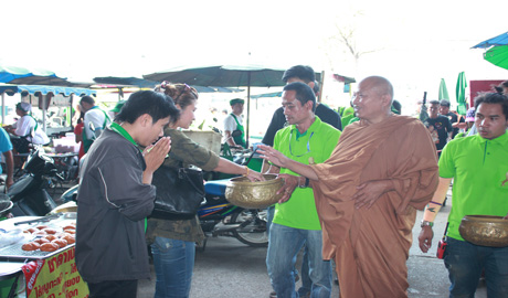พระอาจารย์อลงกต เจ้าอาวาสวัดพระบาทน้ำพุ จ.ลพบุรี เดินทางมารับบิณฑบาตรข้าวสาร อาหารแห้ง และยาเวชภัณฑ์ ที่ตลาดศรีเมือง เพื่อนำไปช่วยเหลือผู้ป่วยที่ติดเชื้อ HIV. ต่อไป โดยตลาดศรีเมืองนำโดยคุณวีณา ศรีสรรพางค์ รองกรรมการผู้จัดการตลาดศรีเมือง พร้อมด้วยผู้บริหาร พนักงาน ผู้ประกอบการค้า ได้ร่วมใส่บาตรข้าวสารอาหารแห้ง ของใช้ที่จำเป็น และถวายภัตตาหารเพล เมื่อวันที่ 31 ตุลาคม 2557