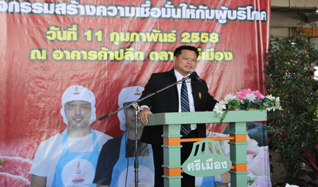 เมื่อวันที่ 11 ก.พ.58 ปศุสัตว์จังหวัดราชบุรีร่วมกับตลาดศรีเมือง จัดกิจกรรมสร้างความเชื่อมั่นให้กับผู้บริโภค โดยมีนายสัตวแพทย์สรวิศ ธานีโต รองอธิบดีกรมปศุสัตว์ นายพิพัฒน์ เอกภาพันธ์ รองผู้ว่าราชการจังหวัดราชบุรี และนางวีณา ศรีสรรพางค์ รองประธานกรรมการบริหารตลาดศรีเมือง ร่วมเปิดกิจกรรมพร้อมมอบใบประกาศเกียรติคุณให้กับผู้ประกอบการค้าในตลาดศรีเมืองที่รักษามาตรฐานเขียงเนื้อสัตว์ปลอดภัยมาอย่างต่อเนื่อง เพื่อเป็นการรับรองว่าในช่วงเทศกาลตรุษจีนปีนี้ ผู้บริโภคที่มาตลาดศรีเมืองจะได้เนื้อสัตว์ที่มีความปลอดภัยอย่างแน่นอน