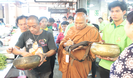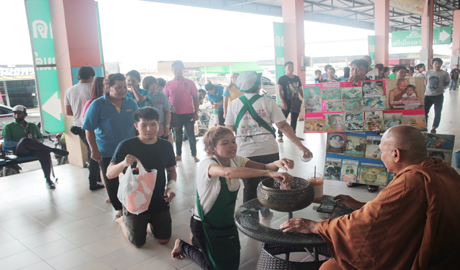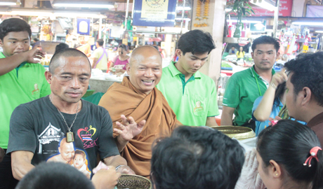 คุณนภินทร - คุณวีณา ศรีสรรพางค์ ผู้บริหารระดับสูงตลาดศรีเมือง พร้อมผู้บริหาร ร่วมให้การต้อนรับพระอาจารย์อลงกต เจ้าอาวาสวัดพระบาทน้ำพุ จ.ลพบุรี เดินทางมารับบิณฑบาตรข้าวสาร อาหารแห้ง และยาเวชภัณฑ์ ที่ตลาดศรีเมือง เพื่อนำไปช่วยเหลือผู้ป่วยที่ติดเชื้อ HIV. และเด็กกำพร้าที่ยากไร้ ในโครงการเมตตาธรรมค้ำจุนโลก โดยตลาดศรีเมืองนำโดยคุณวีณา ศรีสรรพางค์ รองกรรมการผู้จัดการตลาดศรีเมือง ผู้บริหาร พนักงาน ผู้ประกอบการค้า ได้ร่วมใส่บาตรข้าวสารอาหารแห้ง ของใช้ที่จำเป็น และถวายภัตตาหารเพล เมื่อวันที่ 30 ตุลาคม 2558