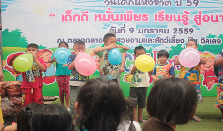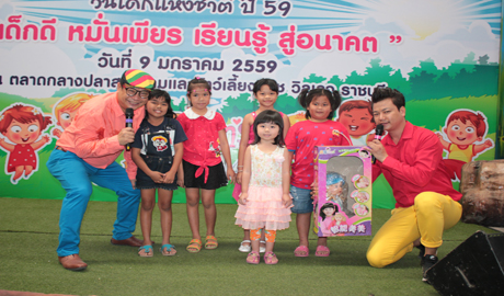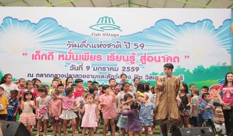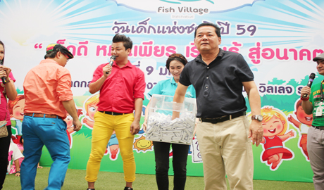 คุณนภินทร ศรีสรรพางค์ กรรมการผู้จัดการตลาดกลางปลาสวยงามและสัตว์เลี้ยง ฟิช วิลเลจ มอบจักรยานให้กับเด็กๆ ที่โชคดี ในงานวันเด็กประจำปี 2559 ที่จัดโดยตลาดกลางปลาสวยงามและสัตว์เลี้ยง ฟิช วิลเลจ ราชบุรี เมื่อวันที่ 9 มกราคม 2559 โดยภายในงานจัดให้มีกิจกรรมต่างๆ บนเวทีมากมาย ซึ่งได้รับความสนใจจากเด็กๆ ในเขตอำเภอบ้านโป่งและใกล้เคียงเข้าร่วมเป็นจำนวนมาก