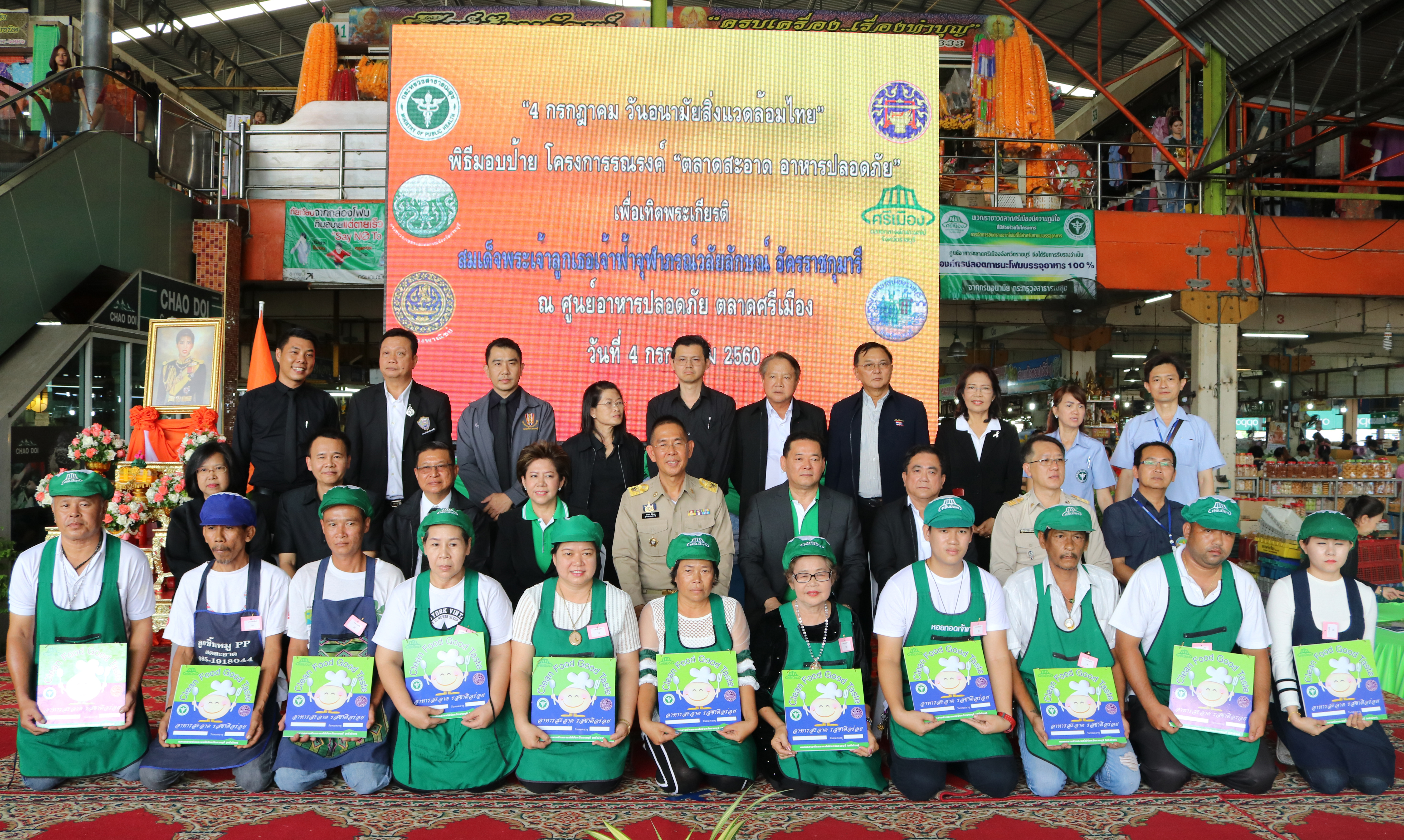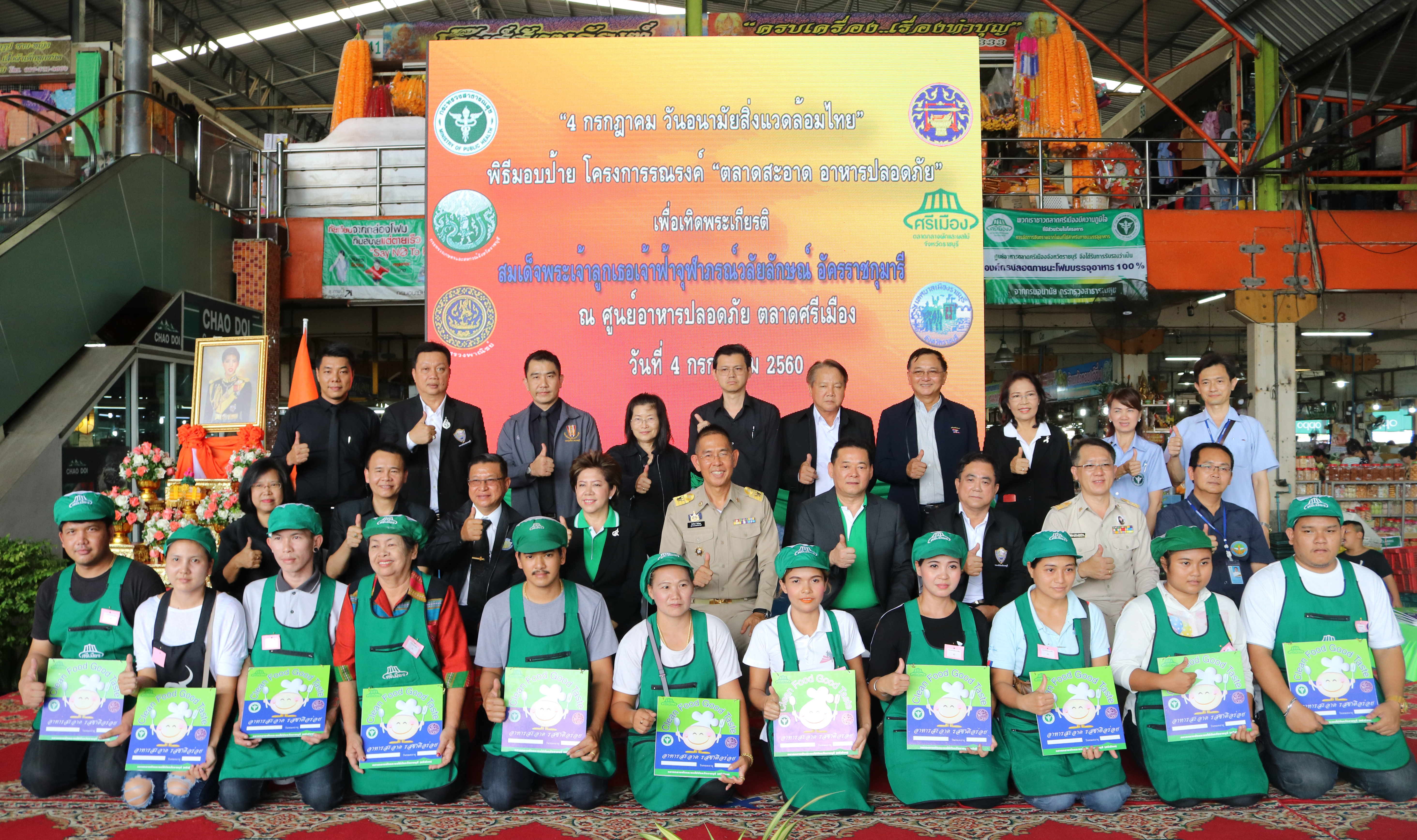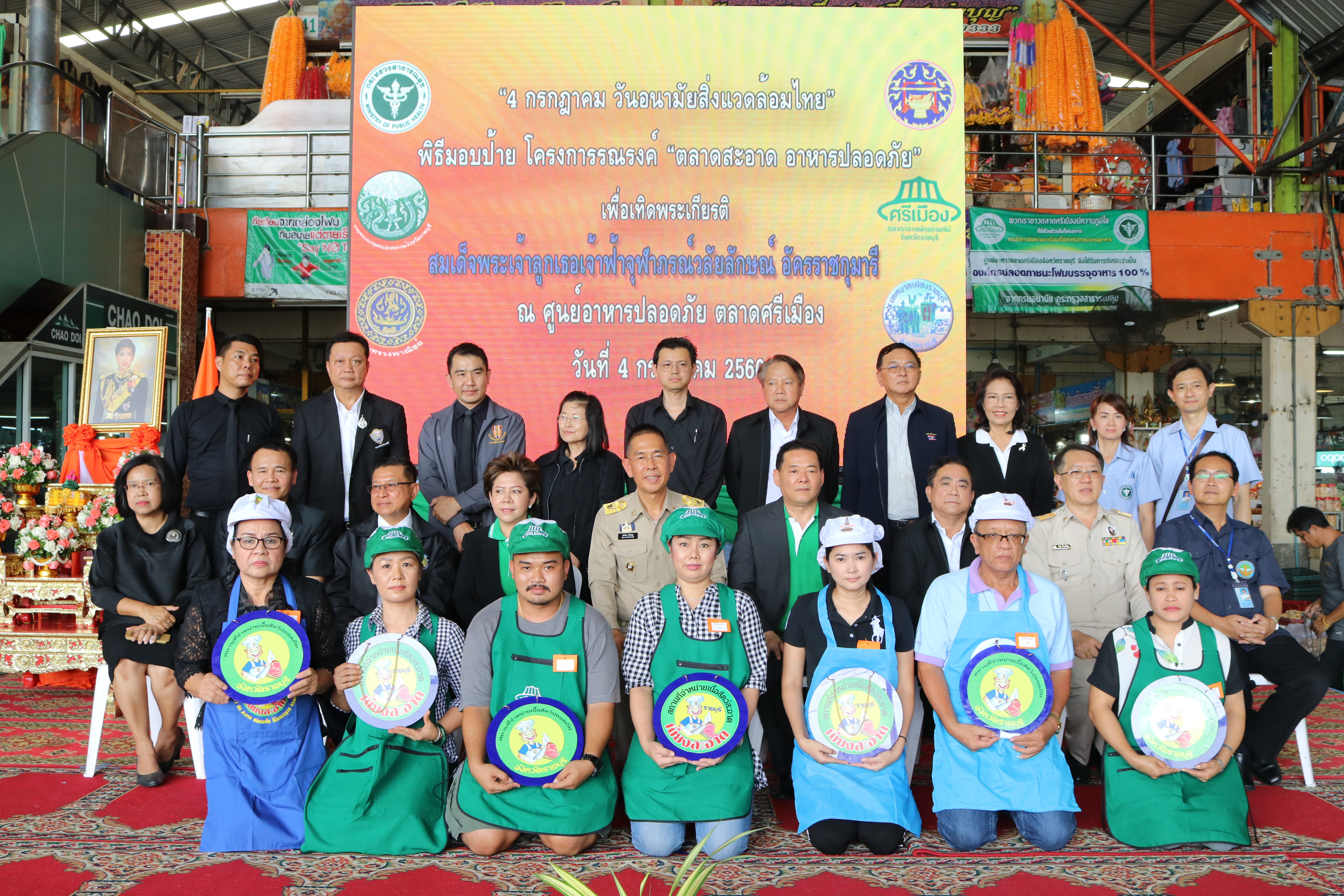 นายชัยวัฒน์ ชื่นโกสุม ผู้ว่าราชการจังหวัดราชบุรี เป็นประธานในพิธีมอบป้ายรับรองแก่ผู้ประกอบการในตลาดศรีเมืองที่ผ่านการตรวจประเมินตามโครงการ “ตลาดสะอาด อาหารปลอดภัย” จำนวนทั้งสิ้น 182 คน โดยนายนภินทร ศรีสรรพางค์ ประธานกรรมการบริหารตลาดศรีเมือง กล่าวรายงานวัตถุประสงค์การจัดงาน ซึ่งมีผู้แทนจากหน่วยงานราชการร่วมเป็นเกียรติมอบป้าย สำหรับกิจกรรมดังกล่าวจัดขึ้นเพื่อเป็นการเทิดพระเกียรติ สมเด็จพระเจ้าลูกเธอ เจ้าฟ้าจุฬาภรณ์วลัยลักษณ์ อัครราชกุมารีเจ้าฟ้านักพัฒนาอนามัยสิ่งแวดล้อม เนื่องในโอกาสวันคล้ายวันประสูติและพระชันษาครบ 5 รอบ สอดรับกับนโยบายของรัฐบาล “ครัวไทยสู่ครัวโลก” ณ บริเวณอาคารศูนย์อาหารปลอดภัย ตลาดศรีเมือง เมื่อวันที่ 4 กรกฎาคม 2560