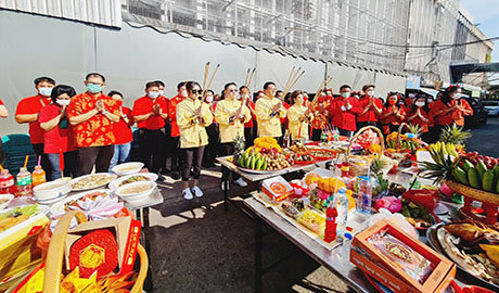 คุณนภินทร - คุณวีณาและคุณภาคิน - คุณณัฐพร ศรีสรรพางค์ ผู้บริหารระดับสูง พร้อมด้วยคณะผู้บริหาร พนักงานตลาดศรีเมือง ได้ร่วมกันไหว้พ่อปู่ - อาม่า เพื่อความเป็นสิริมงคล เนื่องในโอกาสเทศกาลตรุษจีน ประจำปี 2566 ณ บริเวณศาลพ่อปู่ - อาม่า พร้อมกับ ไหว้สิ่งศักดิ์สิทธิ์ ที่ชาวตลาดศรีเมืองให้การนับถือ และตามอาคารสถานที่ต่างๆ ภายในตลาดศรีเมือง ตามความเชื่อที่ได้ถือปฏิบัติมาตั้งแต่เริ่มก่อตั้งบริษัท