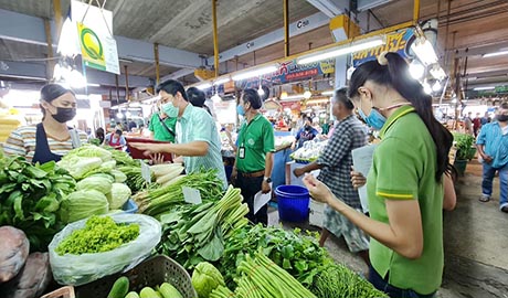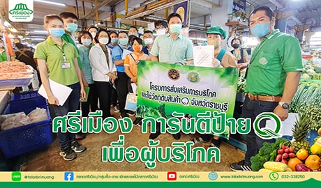 ตลาดศรีเมือง โดยคุณบำรุง สังข์สว่าง ผจก.ฝ่ายพัฒนาการผลิต พร้อมคณะผู้บริหาร และผู้ที่มีส่วนเกี่ยวข้อง ร่วมให้การต้อนรับคุณชลันธร เงินประดับ หัวหน้ากลุ่มยุทธศาสตร์พัฒนาการเกษตร และคณะกรรมการตรวจรับรองแหล่งจำหน่ายสินค้าเกษตรคุณภาพมาตรฐานอาหารปลอดภัยจากสำนักงานเกษตรและสหกรณ์ จ.รบ., สนง.ปศุสัตว์ จ.รบ., ประมง จ.รบ., ศูนย์วิจัยและพัฒนาการเกษตรราชบุรี, ศูนย์วิจัยข้าวราชบุรี และ สนง.สาธารณสุข จ.รบ.ในโอกาสเดินทางมาตรวจติดตามและเฝ้าระวังสถานที่จำหน่ายสินค้า Q ประเภทตลาดสด ในโครงการส่งเสริมการบริโภคและการใช้วัตถุดิบสินค้า Q ประจำปี 2566 ณ บริเวณอาคาร 8 ตลาดสด เมื่อวันที่ 29 มีนาคม 2566 ในการนี้ ได้ตรวจติดตามผู้ประกอบการที่จำหน่ายผักสด เกี่ยวกับการจำหน่ายสินค้า Q จำนวน 9 ร้าน ซึ่งเป็นการตรวจติดตามร้านเดิมที่มีป้าย Q แล้ว จำนวน 5 ร้าน และตรวจรับรอง 4 ร้าน ที่ขอเข้าร่วมโครงการ ทั้งนี้ ตลาดศรีเมืองได้ดำเนินนโยบายอาหารปลอดภัยอย่างเข้มข้นมาโดยตลอด เพื่อให้ผู้บริโภคมั่นใจว่าซื้อผักสดในตลาดศรีเมืองปลอดภัยแน่นอน