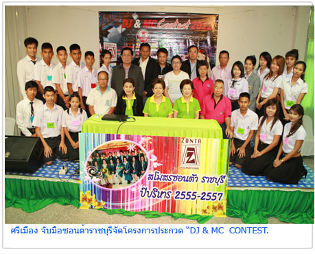 คุณวีณา ศรีสรรพางค์ นายกสโมสรซอนต้าราชบุรี เป็นประธานในพิธีเปิดโครงการ “ประกวดนักจัดรายการวิทยุและพิธีกร DJ & MC CONTEST” ซึ่งจัดโดยสโมรสรซอนต้าราชบุรี ร่วมกับสโมสรโรตารี่แก่นจันทน์ ห้างสรรพสินค้าโรบินสันราชบุรี ตลาดศรีเมือง และสถานีวิทยุ HIT STATION F.M.95.50 MHz โดยมีเยาวชนที่สนใจจากโรงเรียนต่างๆ เข้าร่วมอบรมและประกวดในโครงการ ณ ห้องประชุมชั้น 3 สำนักงานตลาดศรีเมือง เมื่อวันที่ 15 กันยายน 2555