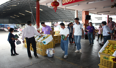 คุณนภินทร - คุณวีณา ศรีสรรพางค์ ผู้บริหารระดับสูงตลาดศรีเมือง พร้อมผู้บริหาร ร่วมให้การต้อนรับ นายอารีย์ เดวี พาณิชย์จังหวัดสุโขทัย พร้อมคณะกลุ่มเกษตรกรผู้ปลูกส้มจังหวัดสุโขทัย เดินทางมาศึกษาดูงานที่ตลาดศรีเมือง โดยมีคุณธนภณ พัฒนา ผู้จัดการฝ่ายพัฒนาการผลิต ให้การต้อนรับ ณ ห้องประชุมชั้น 2 สำนักงานตลาดศรีเมือง เมื่อวันที่ 26 มิถุนายน 2558 พร้อมกันนี้ คณะศึกษาดูงานได้ขึ้นรถโมบาย เยี่ยมชมบริเวณต่างๆ ภายในตลาดด้วย