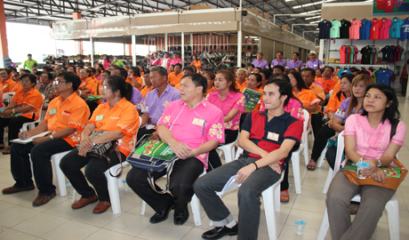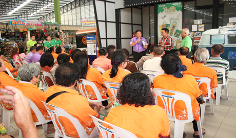 คุณนภินทร - คุณวีณา ศรีสรรพางค์ ผู้บริหารระดับสูงตลาดศรีเมือง พร้อมผู้บริหาร ร่วมให้การต้อนรับสิบตำรวจโทเสถียร วรวงศ์ นายกเทศมนตรีตำบลดอนโมง อ.หนองเรือ จ.ขอนแก่น พร้อมคณะกรรมการ อสม. คณะกรรมการชุมชนของเทศบาลตำบลดอนโมง เดินทางมาศึกษาดูงานที่ตลาดศรีเมือง โดยมีคุณประดิษฐ เหลืองทองเจริญ ผู้ช่วยกรรมการผู้จัดการตลาดศรีเมือง คุณธณภน พัฒนา ผู้จัดการฝ่ายพัฒนาการผลิต ให้การต้อนรับ ณ บริเวณอาคารศรีเมืองอาเซียน เมื่อวันที่ 8 กรกฎาคม 2558 พร้อมกันนี้ คณะศึกษาดูงานได้ขึ้นรถโมบายเยี่ยมชมบริเวณต่างๆ ภายในตลาดศรีเมืองด้วย