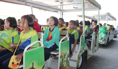 คุณนภินทร - คุณวีณา ศรีสรรพางค์ ผู้บริหารระดับสูงตลาดศรีเมือง พร้อมผู้บริหาร ร่วมให้การต้อนรับ คุณชัชวาล เบญจมานุกูล ผู้อำนวยการโรงเรียนทุ่งหญ้าคมบาง ต.ดอนแร่ อ.เมือง จ.ราชบุรี นำคณะครูและนักเรียนระดับชั้นประถมศึกษาปีที่ 3 – 6 มาศึกษาดูงานที่ตลาดศรีเมือง โดยมีคุณธนภณ พัฒนา ผู้จัดการฝ่ายพัฒนาการผลิต ให้การต้อนรับ ณ โรงหนังกันตนา ตลาดศรีเมือง เมื่อวันที่ 13 มกราคม 2559 พร้อมกันนี้ คณะศึกษาดูงานได้ขึ้นรถโมบายเยี่ยมชมบริเวณต่างๆ ภายในตลาดด้วย