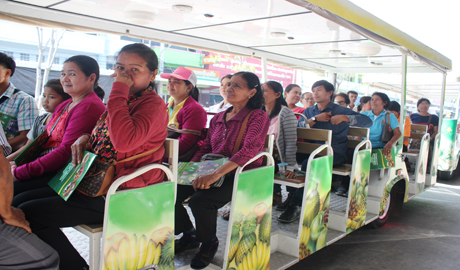 คุณธนภณ พัฒนา ผู้จัดการฝ่ายพัฒนาการผลิต ให้การต้อนรับ คณะศึกษาดูงานจากศูนย์การเรียนรู้ผ่านการฝึกงานเกษตร จากประเทศญี่ปุ่น (JAEC) ศูนย์ภาคตะวันตก อ.พนมทวน จ.กาญจนบุรี นำโดยคุณบุญช่วย ปั้นหยัด ประธานศูนย์การเรียนรู้ชมรม (JAEC) ภาคตะวันตก จ.กาญจนบุรี พร้อมคณะเกษตรกร เดินทางมาศึกษาดูงานที่ตลาดศรีเมือง ณ โรงหนังกันตนา ตลาดศรีเมือง เมื่อวันที่ 14 กุมภาพันธ์ 2559 พร้อมกันนี้ คณะศึกษาดูงานได้ขึ้นรถโมบายเยี่ยมชมบริเวณต่างๆ ภายในตลาดศรีเมืองด้วย