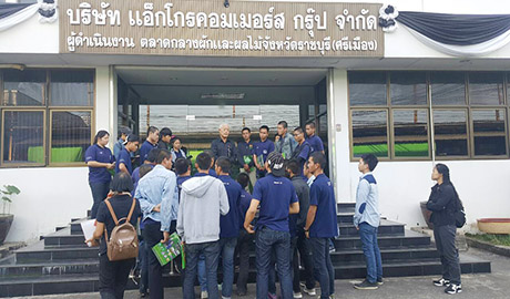 คุณธนภณ พัฒนา ผจก.ฝ่ายพัฒนาการผลิต ให้การต้อนรับคณะอาจารย์และนักศึกษาจากแผนกวิชาพืชศาสตร์ วิทยาลัยเกษตรและเทคโนโลยีมหาสารคาม ในโอกาสเดินทางมาศึกษาดูงานด้านการเกษตรที่ตลาดศรีเมือง เมื่อวันที่ 21 ธันวาคม 2559 พร้อมกันนี้ คณะศึกษาดูงานได้ขึ้นรถโมบายเยี่ยมชมบริเวณต่างๆ ภายในตลาดศรีเมืองด้วย