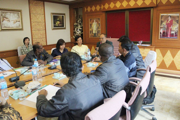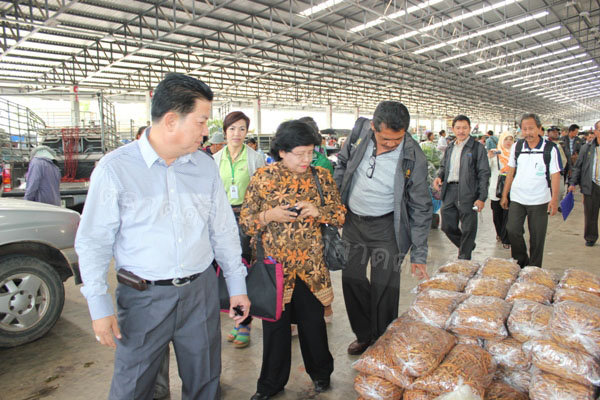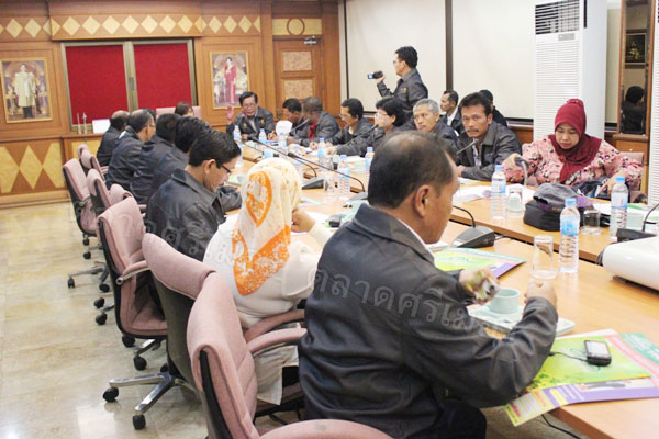 คุณสหัส คำบู่ ผู้ช่วยกรรมการผู้จัดการตลาดศรีเมือง ให้การต้อนรับ รศ.ดร.บุญส่ง โกสะ ที่ปรึกษาโครงการ ICDC และคณะศึกษาดูงานชาวอินโดนีเซีย ซึ่งเป็นผู้เข้ารับการอบรมสาขาต่างๆ จากมหาวิทยาลัยเกษตรศาสตร์ ณ ห้องประชุม ชั้น 2 สำนักงานตลาดศรีเมือง เมื่อวันที่ 16 พฤษภาคม 2555 พร้อมกันนี้คณะศึกษาดูงานได้เยี่ยมชมตลาดศรีเมืองด้วย
