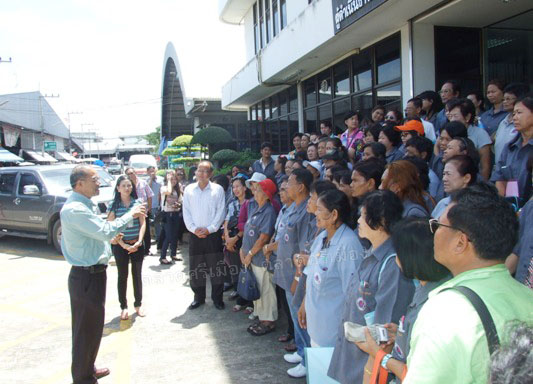 คุณสหัส คำบู่ ผู้ช่วยกรรมการผู้จัดการตลาดศรีเมือง ให้การต้อนรับคณะศึกษาดูงานจากเทศบาลบางพูน จังหวัดปทุมธานี ณ ห้องประชุมชั้น 3 สำนักงานตลาดศรีเมือง เมื่อวันที่ 22 สิงหาคม 2555 พร้อมกันนี้คุณปิยนุช ภู่สวัสดิ์ หัวหน้าฝ่ายประชาสัมพันธ์ ได้นำคณะศึกษาดูงานเยี่ยมชมตลาดศรีเมืองในครั้งนี้ด้วย
