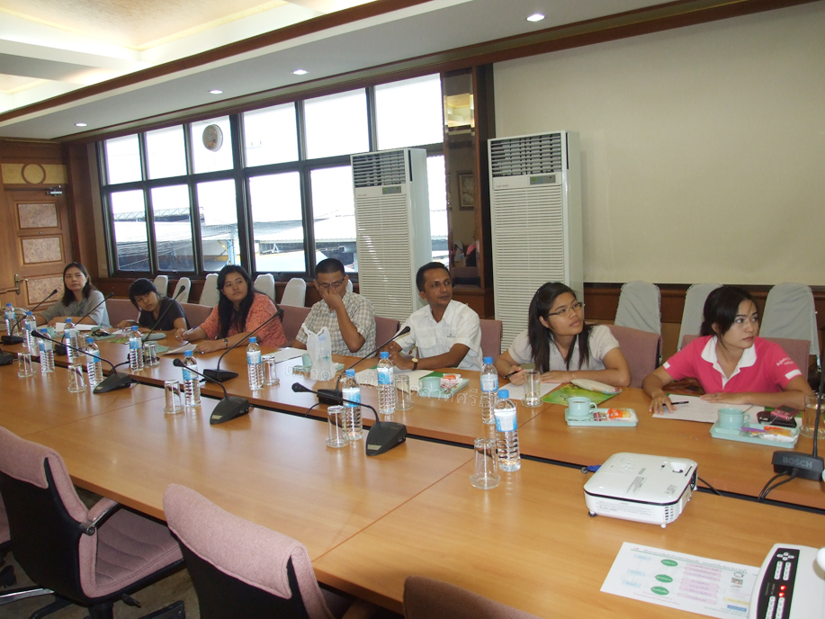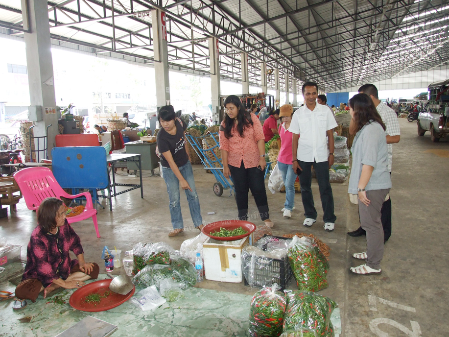 คุณสหัส คำบู่ ผู้ช่วยกรรมการผู้จัดการตลาดศรีเมือง และคุณธณภณ พัฒนา ผู้จัดการฝ่ายพัฒนาการผลิต ให้การต้อนรับคณะศึกษาดูงานจากมหาวิทยาลัยเทคโนโลยีพระจอมเกล้าธนบุรี ในโอกาสเดินทางมาศึกษาดูงานตลาดศรีเมือง ณ ห้องประชุมชั้น 2 สำนักงานตลาดศรีเมือง เมื่อวันที่ 4 ธันวาคม 2555 พร้อมกันนี้ คณะศึกษาดูงานได้เยี่ยมชมศูนย์ตรวจสอบคุณภาพผลิตภัณฑ์อาหาร ผลิตผลการเกษตร และปัจจัยการผลิต และบริเวณโดยรอบของตลาดศรีเมืองด้วย