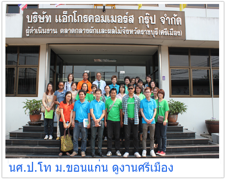 คุณสหัส คำบู่ ผู้ช่วยกรรมการผู้จัดการตลาดศรีเมือง ให้การต้อนรับคณะศึกษาดูงาน ซึ่งเป็นอาจารย์และนักศึกษาระดับปริญญาโท สาขาวิชาธุรกิจการเกษตร มหาวิทยาลัยขอนแก่น จ.ขอนแก่น ในโอกาสเดินทางมาศึกษาดูงานที่ตลาดศรีเมือง เพื่อเพิ่มพูนความรู้ ทักษะ และเสริมสร้างประสบการณ์ให้กับนักศึกษา เมื่อวันที่ 8 มีนาคม 2556 ณ ห้องประชุมชั้น 2 สำนักงานตลาดศรีเมือง ในโอกาสนี้ คุณปิยนุช ภู่สวัสดิ์ หัวหน้างานประชาสัมพันธ์ นำคณะศึกษาดูงานขึ้นรถโมบายเยี่ยมชมบริเวณต่างๆ ของตลาดด้วย