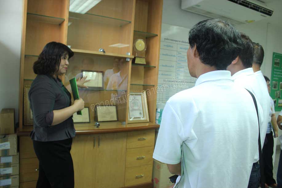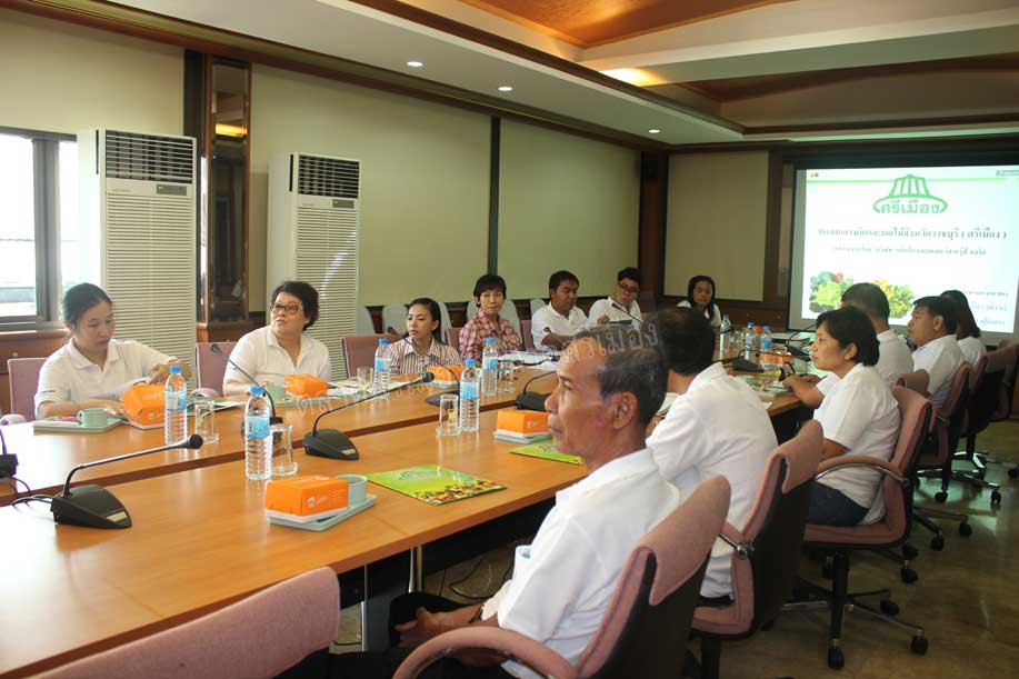 : คุณประดิษฐ เหลืองทองเจริญ ผู้ช่วยกรรมการผู้จัดการตลาดศรีเมือง พร้อมด้วยคุณธณภน พัฒนา ผู้จัดการฝ่ายพัฒนาการผลิต ให้การต้อนรับคณะศึกษาดูงานจากศูนย์วิทยาศาสตร์การแพทย์ที่ 3 ซึ่งได้นำคณะทำงานของตลาดดังในจังหวัดนครสวรรค์และจังหวัดกำแพงเพชร มาศึกษาดูงานที่ตลาดศรีเมือง เมื่อวันที่ 23 เมษายน 2556 ณ ห้องประชุมชั้น 2 สำนักงานตลาดศรีเมือง เพื่อรับทราบการดำเนินงานและการพัฒนา ของตลาดค้าส่งที่มีการบริหารจัดการที่ดี โดยเป็นหนึ่งในโครงการพัฒนาตลาดกลางค้าส่งผัก/ผลไม้สดเพื่อผู้บริโภคปลอดภัย ในการนี้ คณะศึกษาดูงานได้ดูงานฝ่ายพัฒนาการผลิต และขึ้นรถโมบายเยี่ยมชมบริเวณต่างๆ ของตลาดศรีเมืองด้วย