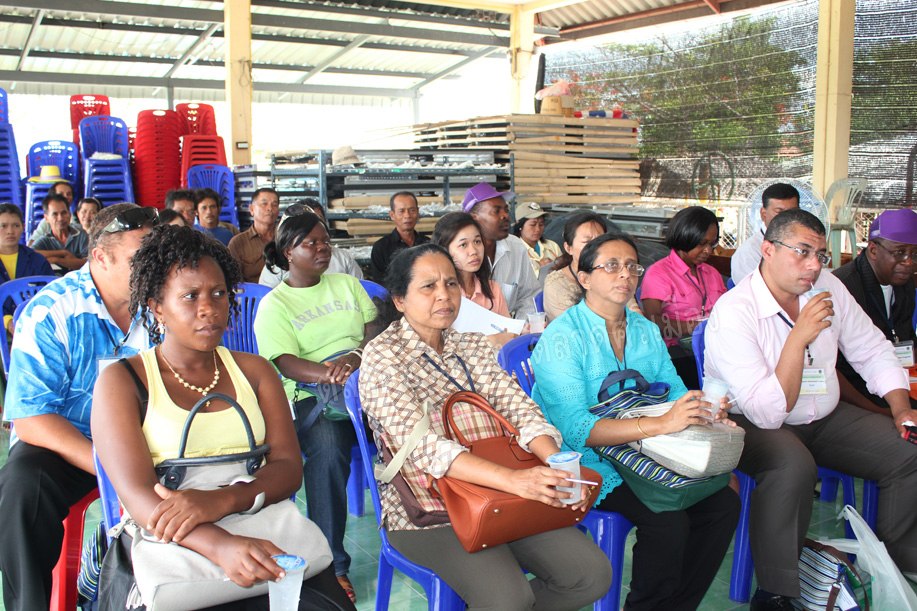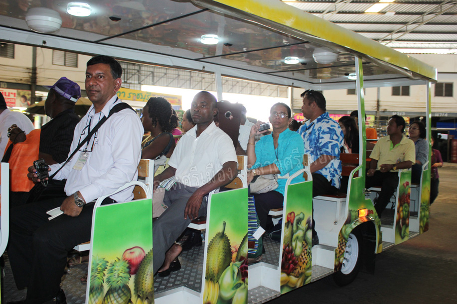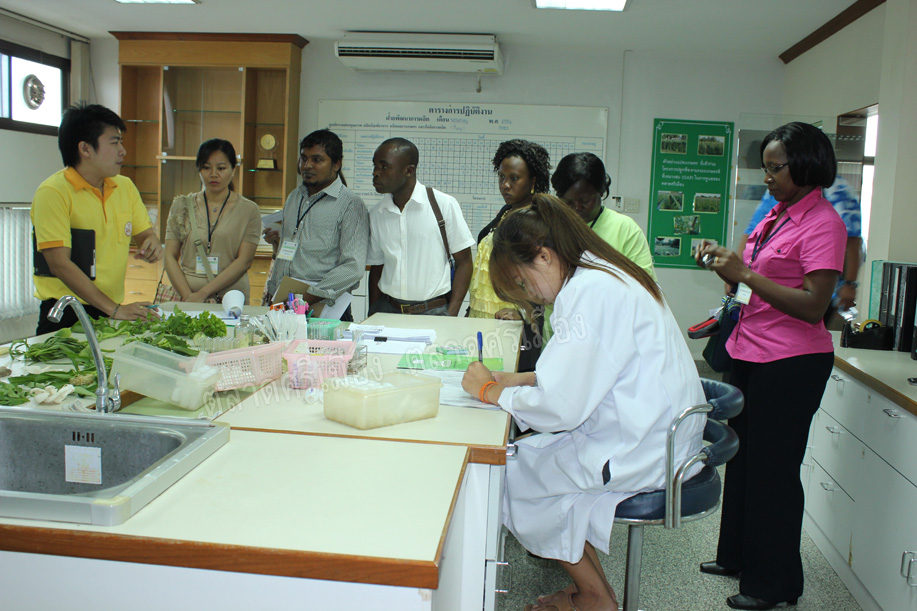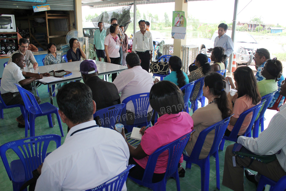 คุณสหัส คำบู่ ผช.กก.ผจก.ตลาดศรีเมือง ให้การต้อนรับคณะศึกษาดูงานจากมหาวิทยาลัยมหิดล ซึ่งเป็นผู้เข้ารับการอบรมเรื่อง “Thailand food and Nutrition Security” จากประเทศต่างๆ 15 ประเทศ ในโอกาสเดินทางมาศึกษาดูงานที่ตลาดศรีเมือง เมื่อวันที่ 20 พ.ค.56 เพื่อแลกเปลี่ยนเรียนรู้ด้านอาหารปลอดภัย พร้อมกันนี้คณะศึกษาดูงานได้เยี่ยมชมการตรวจสอบสารพิษจากฝ่ายพัฒนาการผลิต และเยี่ยมชมแปลงเกษตรปลอดสารพิษของเกษตรกรในเครือข่ายของตลาดศรีเมืองที่ตำบลบ้านสิงห์ อ.โพธาราม ด้วย