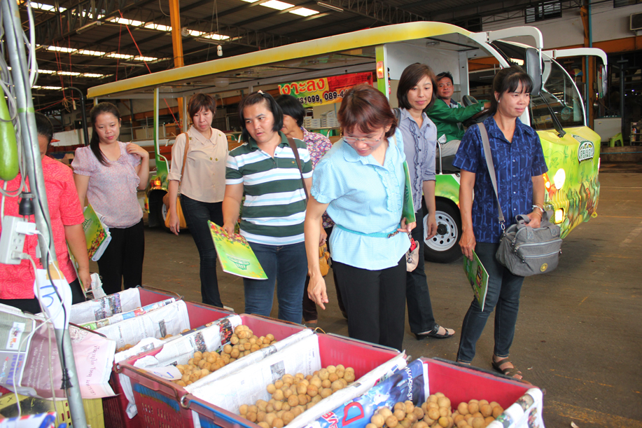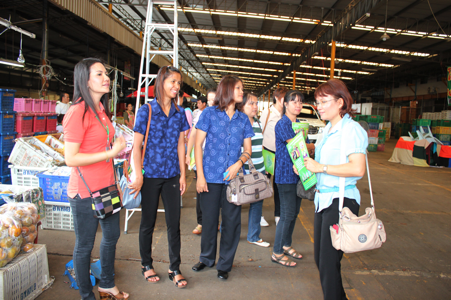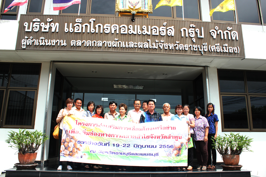 คุณประดิษฐ เหลืองทองเจริญ ผู้ช่วยกรรมการผู้จัดการ พร้อมด้วยผู้บริหารของตลาดศรีเมือง ให้การต้อนรับคณะศึกษาดูงานจากสหกรณ์จังหวัดลำพูน โดยการนำของผู้แทนจากสหกรณ์จังหวัดราชบุรี เพื่อนำข้อมูลต่างๆ ไปประยุกต์ใช้ในการสร้างคุณภาพ สร้างความตระหนักแก่สมาชิกเกษตรกรถึงการผลิตผักปลอดภัย ส่งผลต่อการเชื่อมโยงเครือข่ายในการเพิ่มช่องทางการตลาดต่อไป พร้อมกันนี้ คณะศึกษาดูงานได้ลงพื้นที่พูดคุยกับผู้ประกอบการค้าผลไม้ด้วย