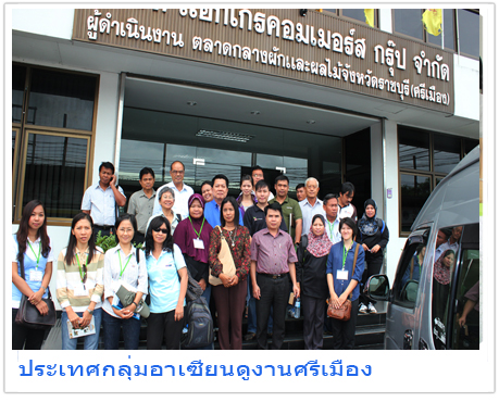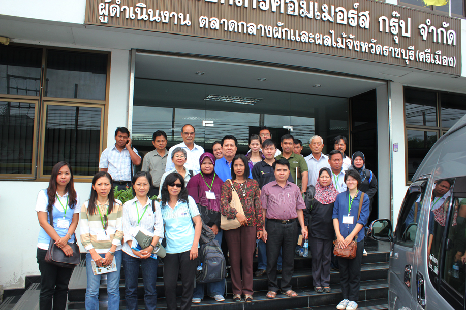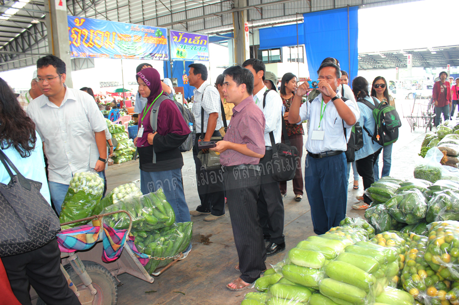 กรมส่งเสริมการเกษตร นำผู้เข้ารับการอบรมหลักสูตร IPM on Vegetable ซึ่งประกอบด้วยเจ้าหน้าที่จากประเทศในเอเชียตะวันออกเฉียงใต้ 8 ประเทศ ได้แก่ มาเลเซีย สิงคโปร์ อินโดนีเซีย บรูไน กัมพูชา เวียดนาม ฟิลิปปินส์ และไทย เดินทางมาศึกษาดูงานการบริหารงานของตลาดศรีเมือง โดยมีคุณประดิษฐ เหลืองทองเจริญ ผู้ช่วยกรรมการผู้จัดการ พร้อมด้วยคุณธณภณ พัฒนา ผู้จัดการฝ่ายพัฒนาการตลาด และคุณสหัส คำบู่ ร่วมให้การต้อนรับ ที่ห้องประชุมชั้น 2 สำนักงานตลาดศรีเมือง เมื่อวันที่ 12 กรกฎาคม 2556 ในการนี้ คณะศึกษาดูงานได้ขึ้นรถโมบายเยี่ยมชมบริเวณต่างๆ ของตลาดศรีเมืองด้วย